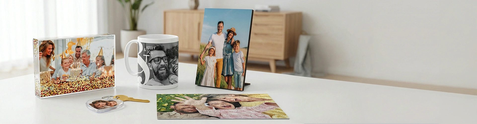 Find the perfect gift for any occasion with Personalized Photo Gifts. From mugs and puzzles to blankets, keychains, and desk decor - each item is custom-made using your photos for a truly personal touch.