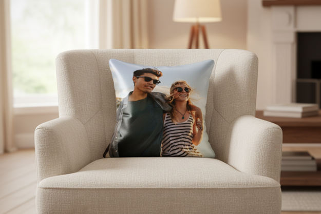 Create custom photo pillows and cuddle in with your favorite images. Upload a photo to design a personalized photo pillow that combines soft comfort, durable fabric, and custom photo printing for personalized home decor and thoughtful photo gifts.