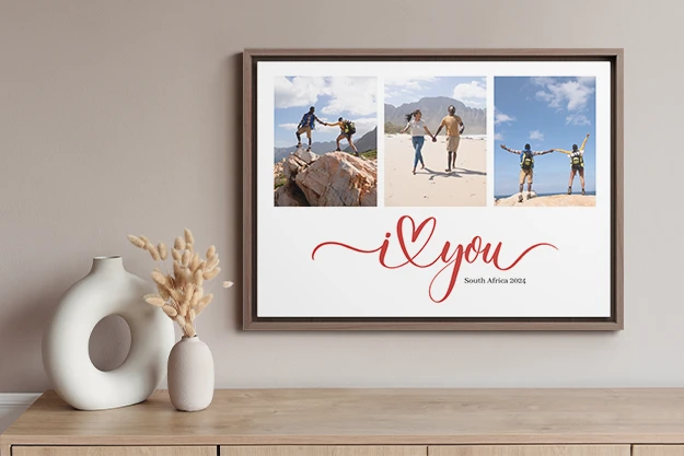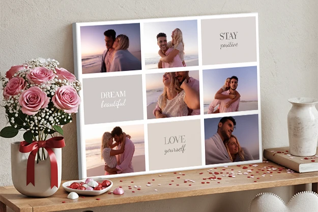 Design a personalized photo canvas collage where several images land on a single canvas. A canvas photo collage handles storytelling beautifully—family moments, shared milestones, trip memories all come together. Multiple photos on one canvas generate wall art that flows as one piece instead of feeling chopped up.